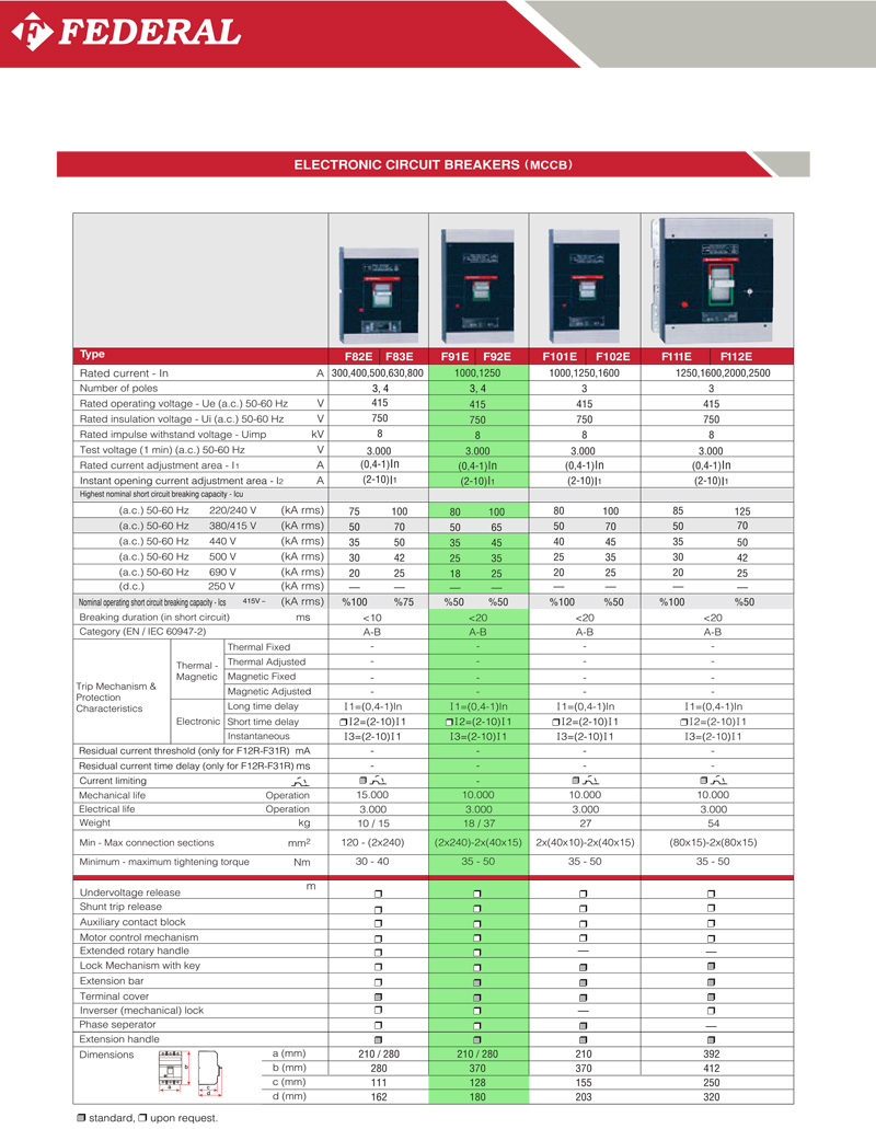 - رنج حداکثر جریان اتصال کوتاه قابل تحمل ( Icu ) : 50 و 65 کیلوآمپر